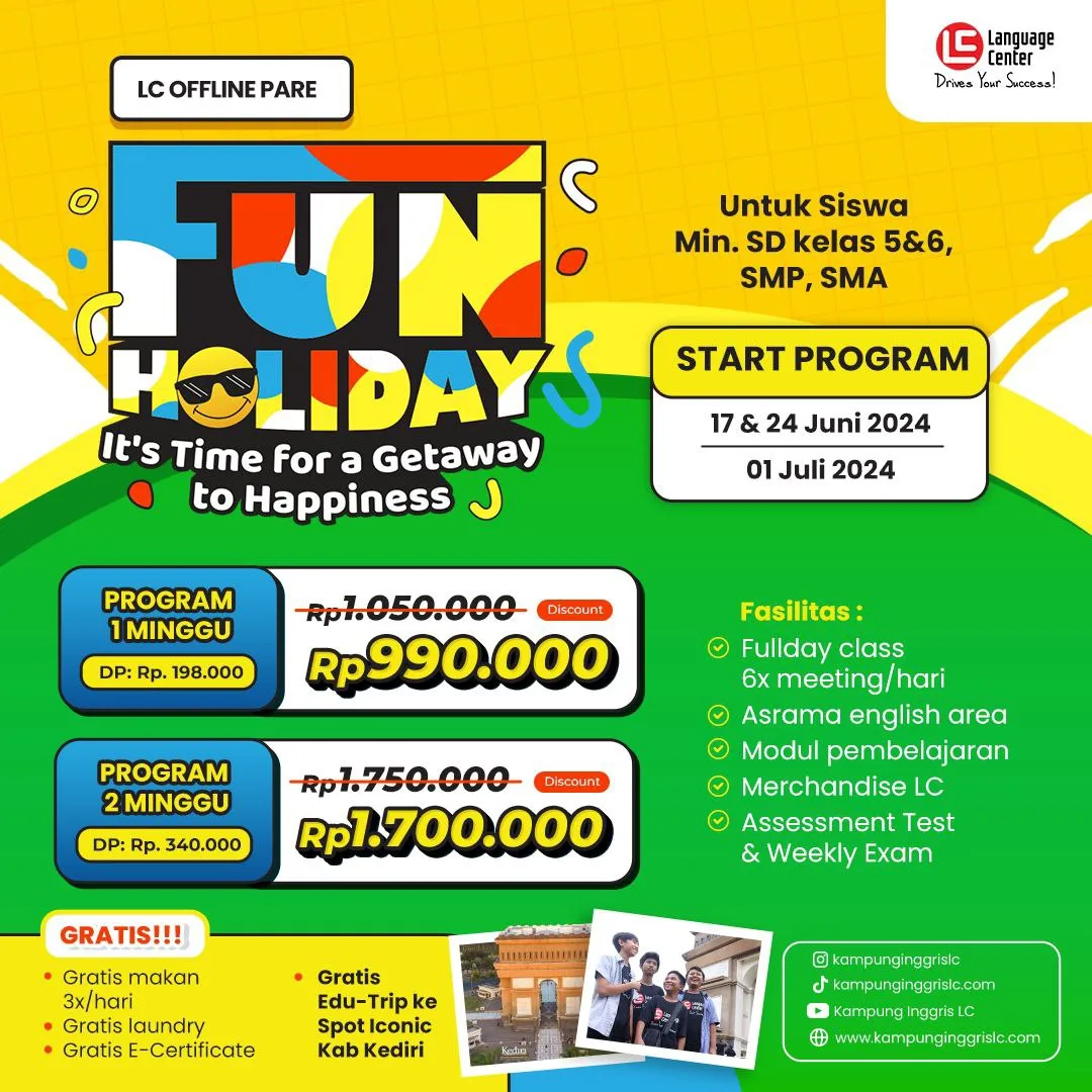 Kampung Inggris LC memiliki program Holiday Ceria yang bisa kamu gunakan untuk belajar bahasa Inggris, termasuk menerapkan vocabulary dalam berbagai aspek, seperti grammar dan speaking. Dengan demikian, penguasaan vocabulary-mu semakin meningkat. Keren, kan?